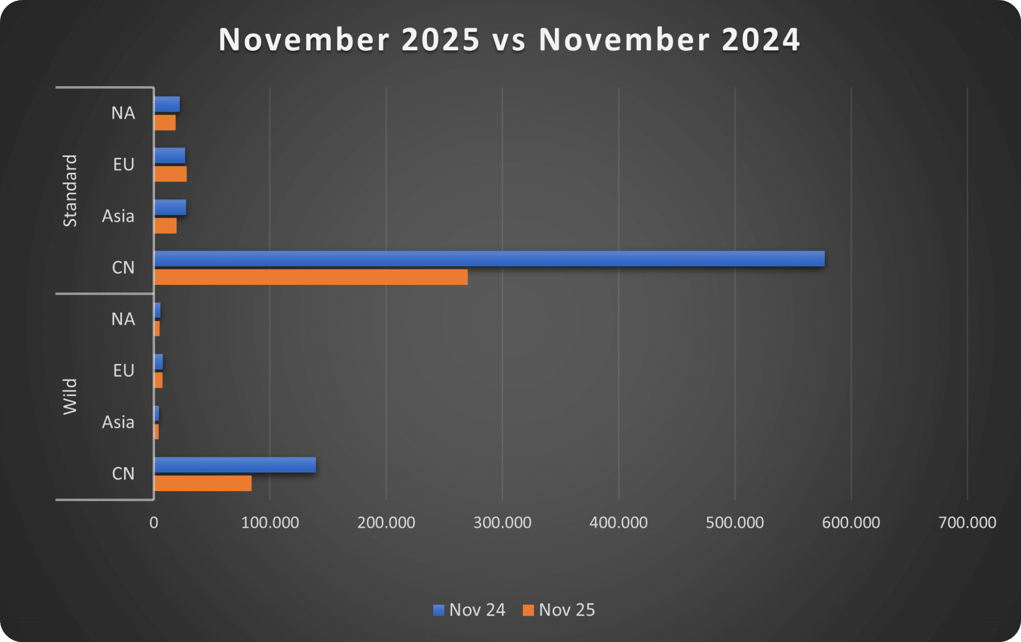 Including CN: Compared to the previous month, we got -1% fewer Legend Players (440k to 437k)
