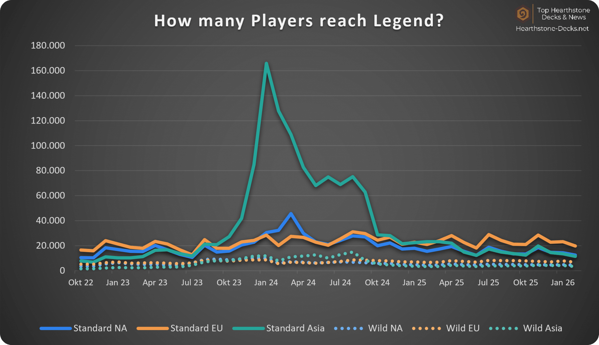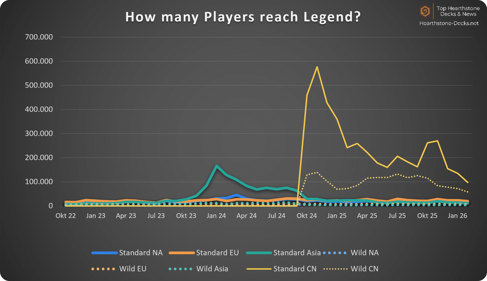 Excluding CN: Compared to the previous month, we got -14% fewer Legend Players (68k to 58k)