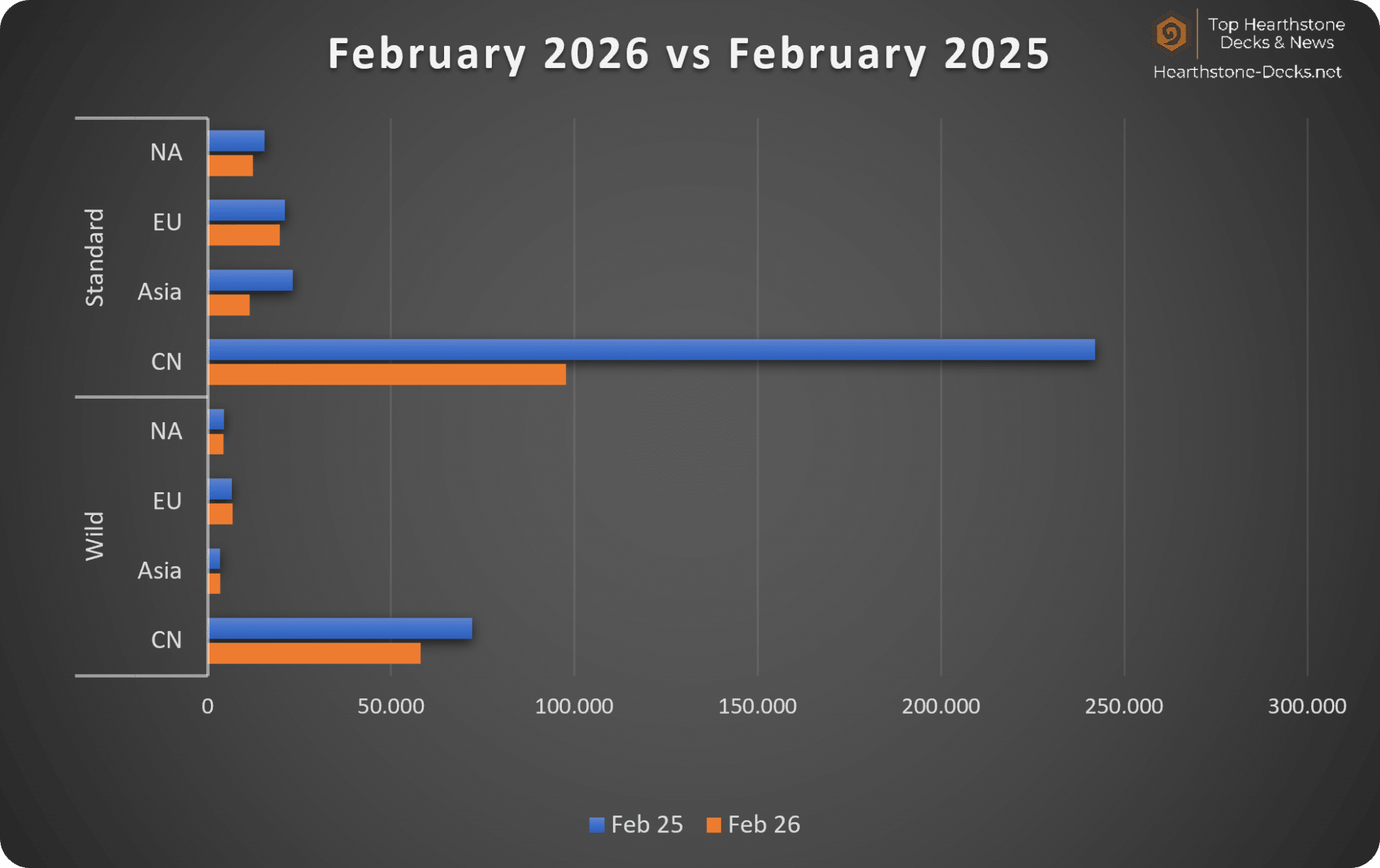 In the CN Region, 26% to 35% of players reached Legend more compared to January, other regions stagnated.